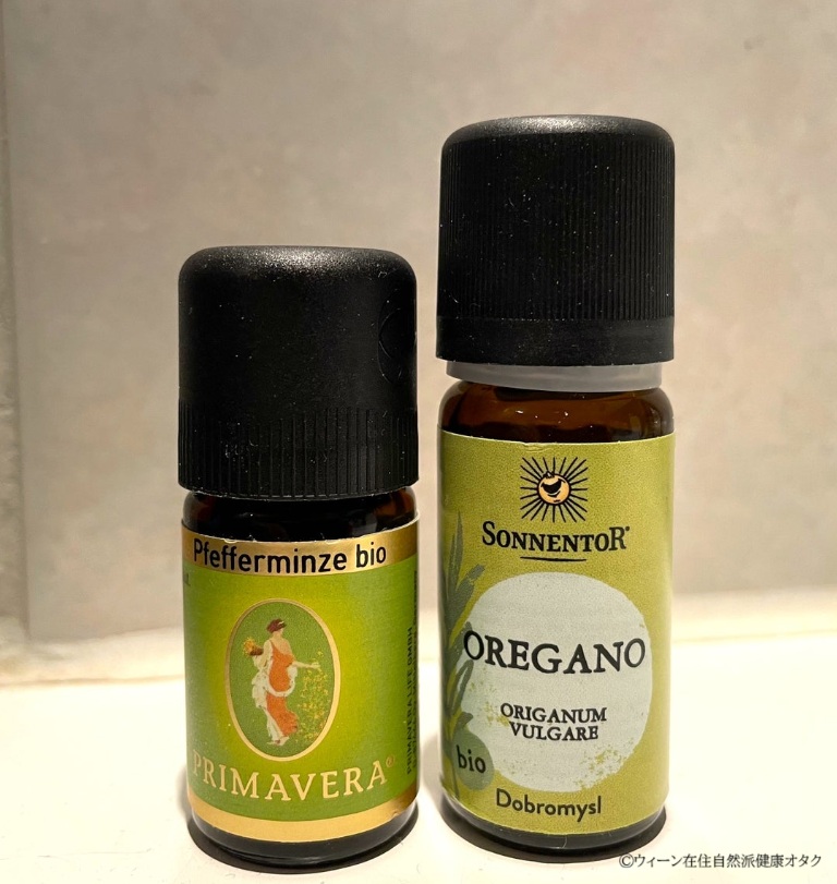 こんな理由から度々体調不良の時にはセージのお茶を飲んできたのですが、喉の痛みや風邪にはとても役立ってくれます。 そしてその他に私がお世話になったのがオレガノオイルとペパーミントオイル。