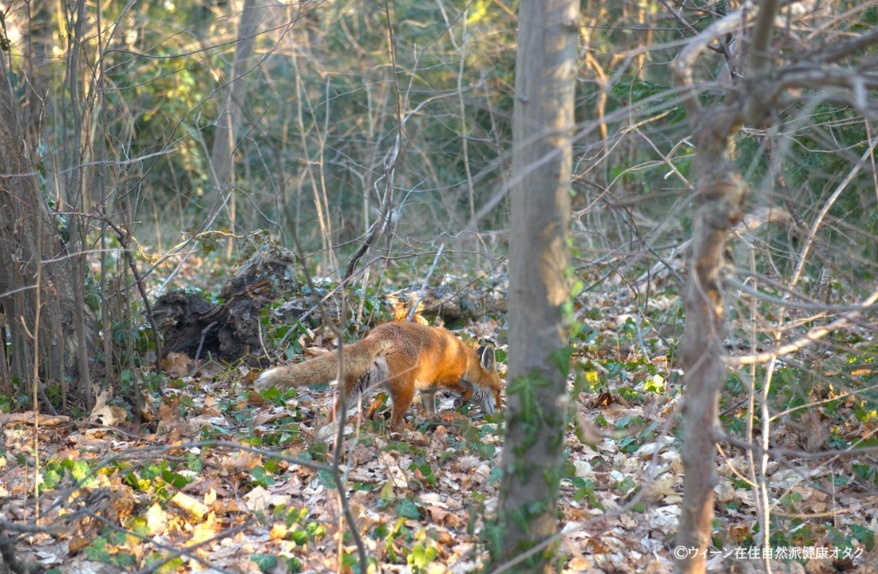 こんなに近くでキツネを見たことがなかったため、すっかり時間を忘れてしまった私でしたが、30分くらい写真を撮り続けた頃キツネも飽きたのか、森の中へと消えていきました。