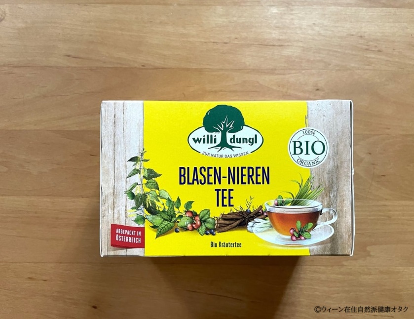 こちらが膀胱と腎臓のお茶(名前がグロテスク)で、バーチの葉、ジュニパーベリー、ペパーミント、ネトル、ローズヒップ等がブレンドされています。