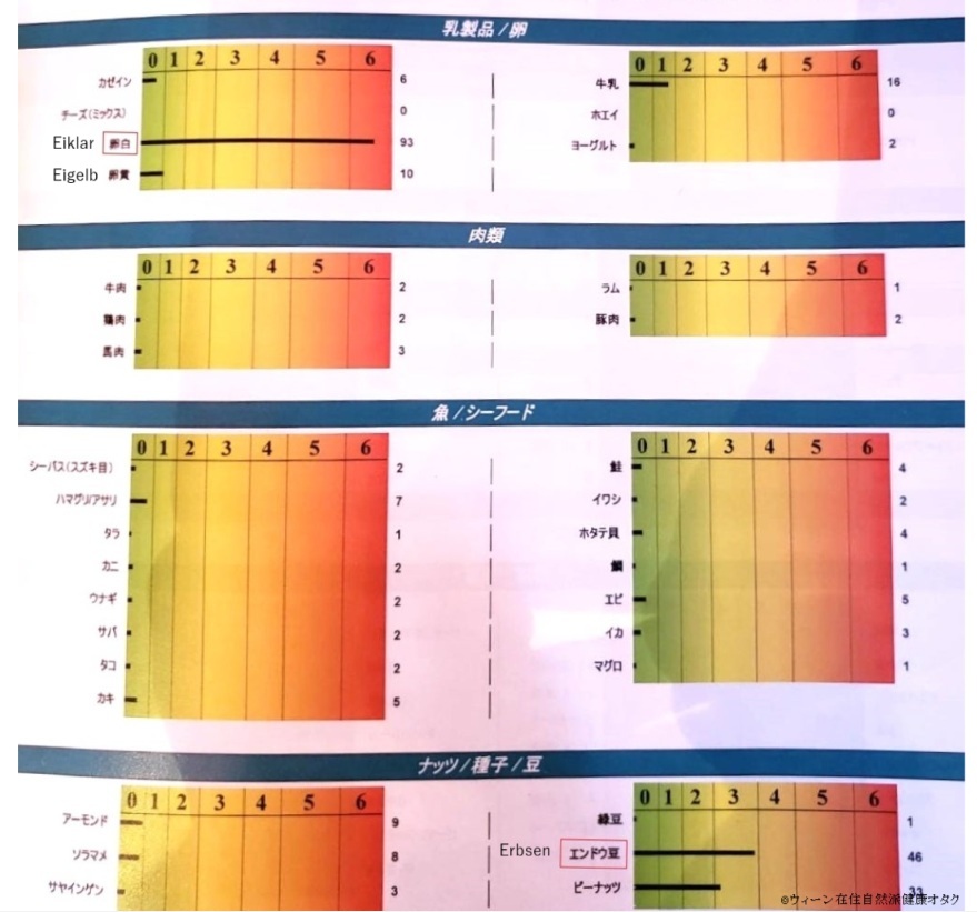 Das Ergebnis war überraschend: Nur das Eiweiß zeigte noch erhöhte Werte, während das Eigelb deutlich gesunken war. Auch viele andere Werte hatten sich verbessert – z. B. waren Erbsen und Gerste die einzigen, die noch über Stufe 3 lagen. Weizen und Tomaten, die früher stark auffällig waren, lagen nun im Normalbereich.