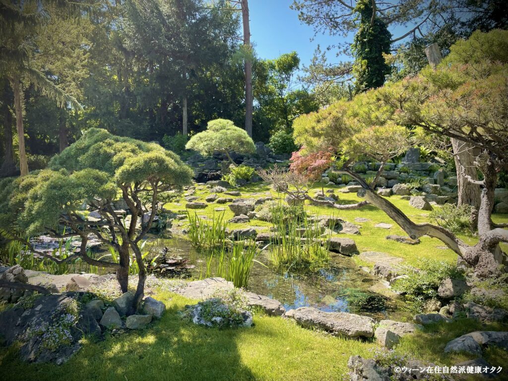 この庭園は1913年に造られましたが、戦争による被害もあり、1990年代後半に現在の形に復元されました。日墺の友好関係の象徴でもあり、石庭の中に様々な日本の木々や植物を見ることができます。暑い日でも緑が涼をもたらしてくれますね。