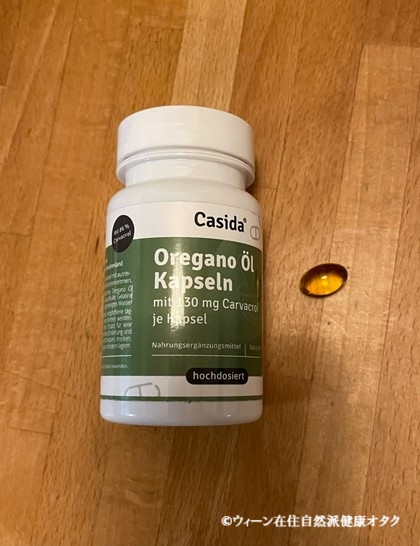 これ以上どうしようもないので、とにかく自分の勉強した植物療法の知識で悪化させないようにしながら様子を見ることにしました。 それからは自分で試してみたかったオレガノオイルのカプセルと、中耳炎用のハーブチンキをサポートとして飲んでいます。オレガノにはものすごく強い抗菌、殺菌作用があり、胃腸の機能も促進してくれる働きがあります。毎晩食後に1錠飲むようにしていますが、これはなかなかウィーンの薬局では手に入らず、ヨーロッパの様々な薬局からの製品を扱っている総合オンラインショップで購入しました。