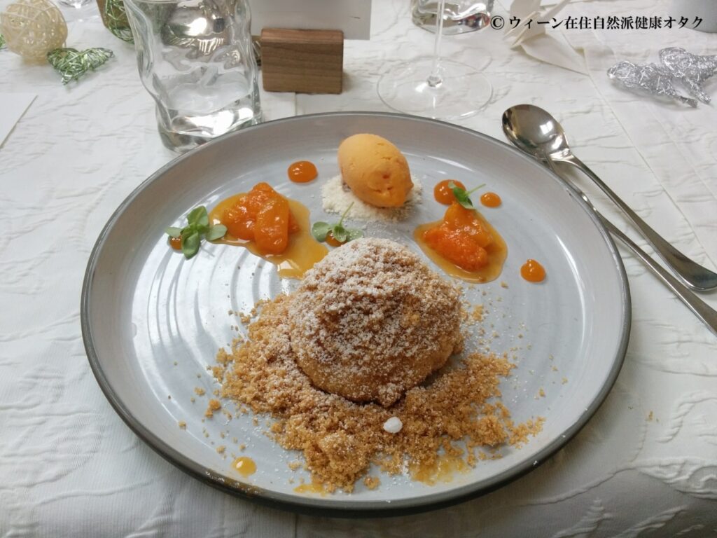 そしてすばらしい秋晴れの日私たちは家族に囲まれ結婚式を上げました。夫が緊張しすぎて少々ハプニングもありましたが、この日が一生の良い思い出になったのは間違いありません。式の後私たち夫婦はデュルンシュタインの絶景を背景に写真撮影をし、その間家族は修道院のガイドツアーに参加しました。(新郎新婦の写真撮影の最中って招待客は時間を持て余してしまいますからね)その後みんな揃ったところでドナウ川の反対側にある街リュルスドルフ(Rührsdorf)のレストランに移動してパーティーです。Landgasthaus Esslと言うこのレストランは2023/24のニーダーエステライヒ州のトップレストランにランキングされており、雰囲気も食事もとても良かったです。特にデザートで出てきた名産のアプリコットを使ったMarillenknödel(アプリコットのお団子)は絶品でした。ヴァッハウ渓谷に行く機会がある方にはぜひ訪れてみてほしいレストランです。