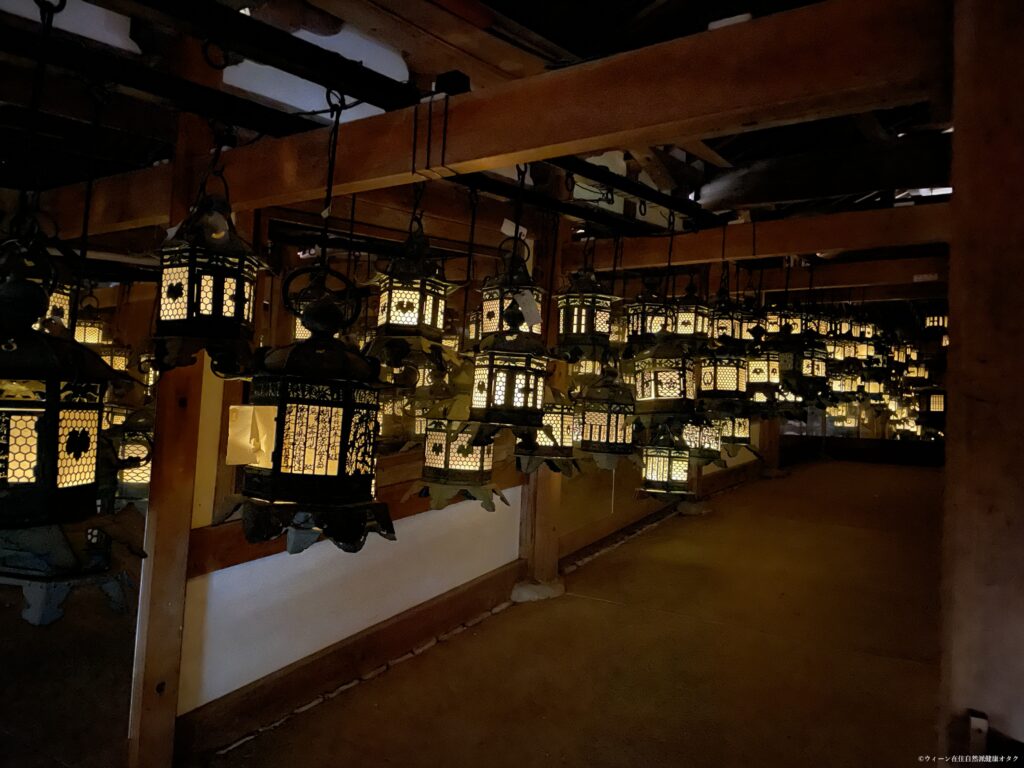 朱色は昔から日本や中国で「魔よけ」の色とされていたそう。目を引きますね。春日大社は燈籠がたくさん奉納されていることでもよく知られているということで、その様子も少し見てきました。