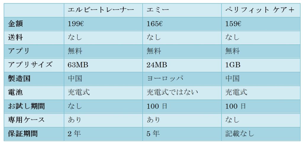 正直な話、購入前はどちらかというとエミーが一番いいのではないか思っていました。それにはいくつか理由があります。製造がヨーロッパであること。専用ケースがついていること。充電式であること。そしてこれはドイツでの話ですが、お医者さんが処方箋を出せば保険適用になるというのです。