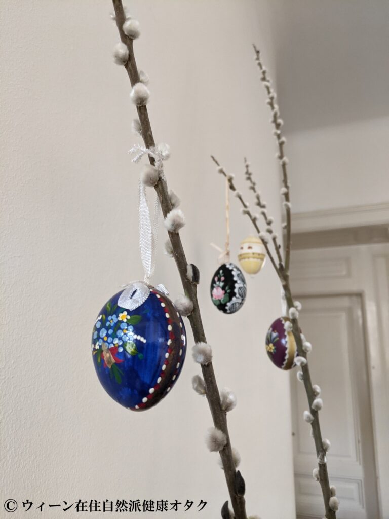 来週末はいよいよイースターですね。日本ではイースターをお祝いすることはあまりないと思いますが、オーストリアは今イースター一色です。我が家では今年も息子と一緒にイースターの飾りつけをしました。オーストリアではネコヤナギに中身を出し綺麗に色が塗られた卵を飾り付けるのが伝統になっています。私たちが飾り付けた卵はお義母さんから受け継いだものと毎年イースターマーケットで買い足しているものがあります。どれもとてもきれいで毎年飾るのがとても楽しみです。