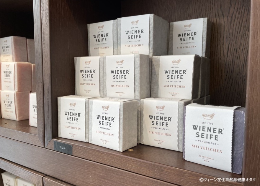 最初の店舗(本店)は3区にありますが、ウィーンで最後の手作り石鹸の製造者とも言われるフリードリッヒ・ヴァイスという人が受け継いだ秘密のレシピに従って、現在も石鹸を製造しているそうです。ココナッツオイルをベースにした石鹸は、化学添加物、鉱物油、防腐剤を使用せず、最高の天然オイル、植物エキス(できれば管理された有機栽培から得たもの)が使われています。